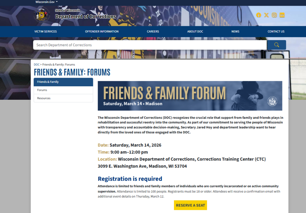 - https://doc.wi.gov/Pages/AboutDOC/FriendsAndFamilyForums.aspx