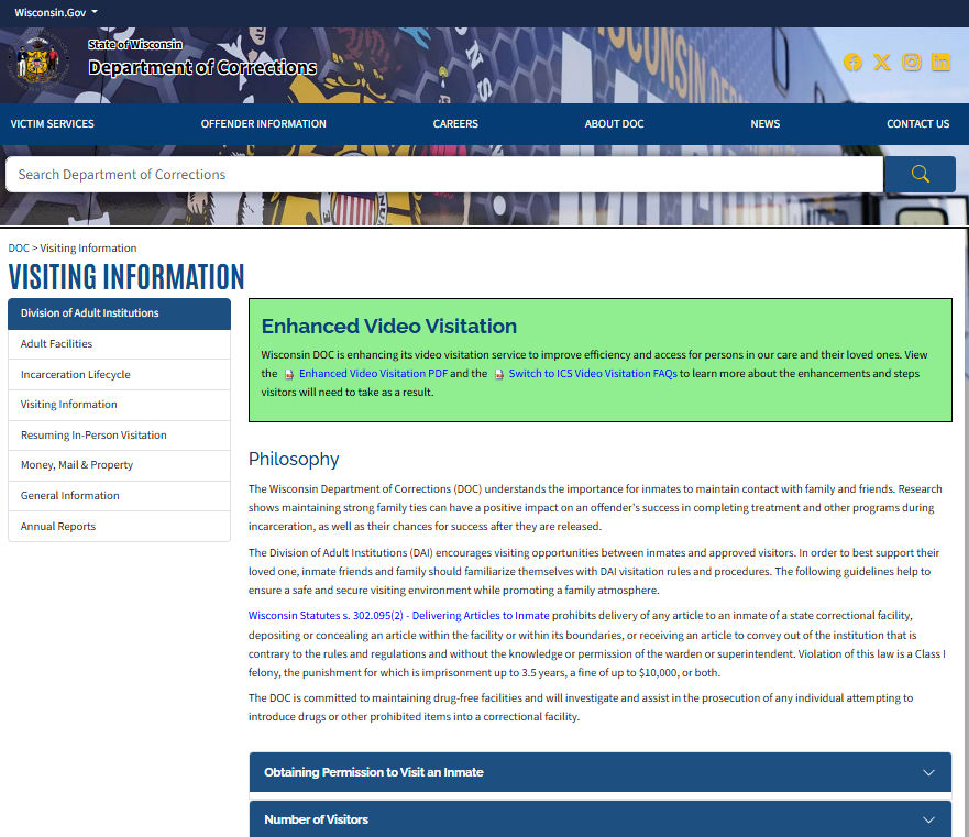 - https://doc.wi.gov/Pages/OffenderInformation/AdultInstitutions/VisitingInformation.aspx