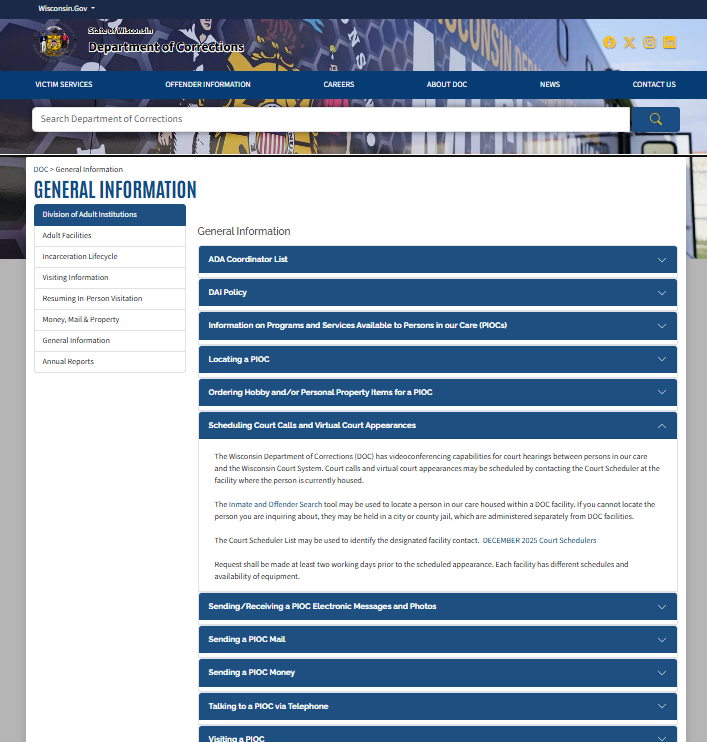 https://doc.wi.gov/Pages/OffenderInformation/AdultInstitutions/GeneralInformation.aspx