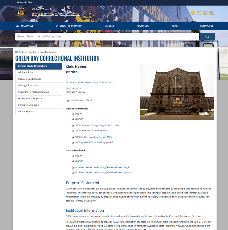 This makes it easy for family members, friends, or legal representatives to confirm an inmate’s placement at Green Bay CI.