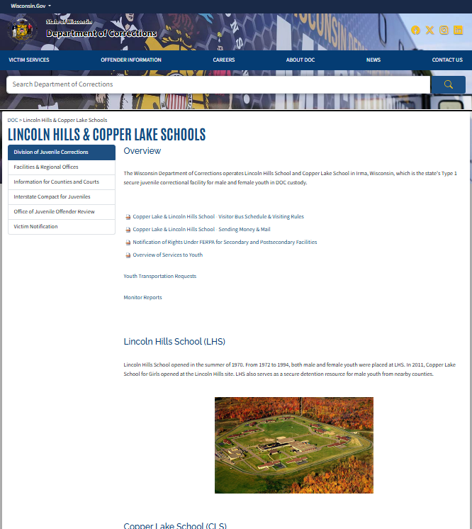 Lincoln Hills School and Copper Lake School serve as Wisconsin’s primary facilities for juvenile corrections. They provide secure detention for both male and female youth, offering programs and supervision in a Type 1 correctional environment. Located in Irma, Wisconsin, Lincoln Hills School (LHS) and Copper Lake School (CLS) https://doc.wi.gov/Pages/AboutDOC/JuvenileCorrections/LincolnHillsCopperLake.aspx operate on the same campus, with clear separation between male and female units. LHS primarily houses male youth, while CLS focuses on female youth, maintaining strict sight and sound separation. Together, they form the state’s only Type 1 secure juvenile correctional system, ensuring safety, structure, and support for all youth in custody.